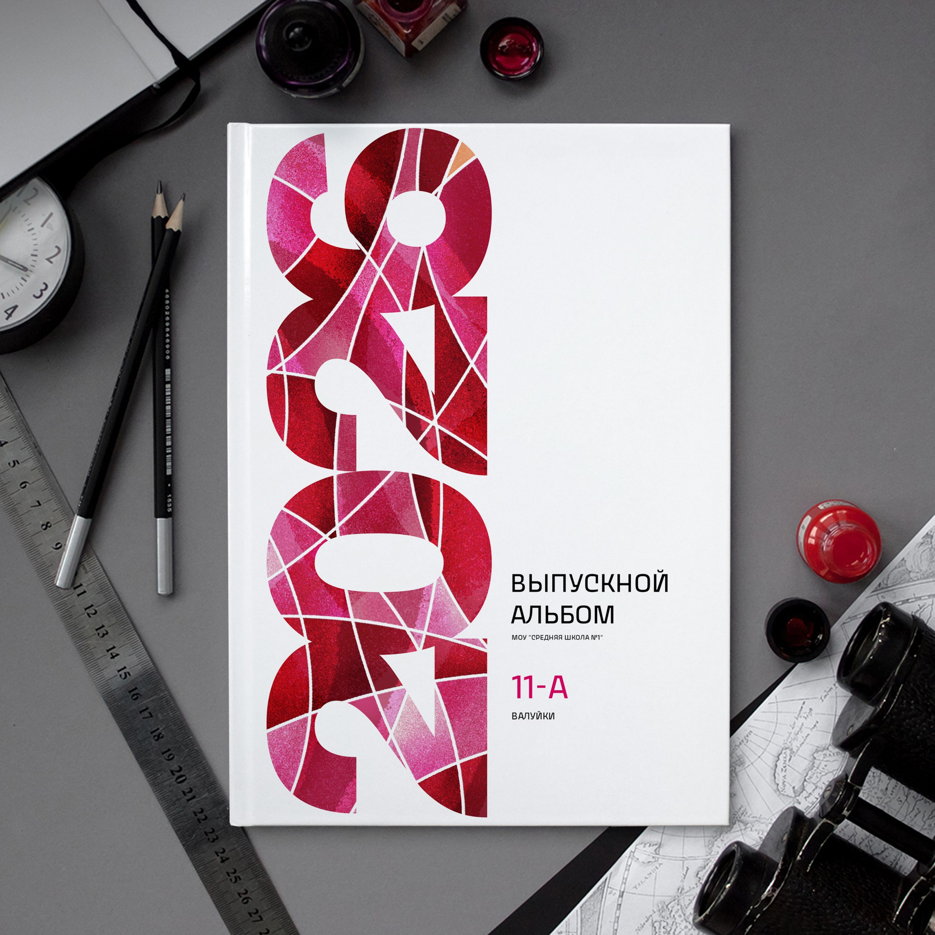 Белая графическая обложка «Витраж» с вертикальным расположением года выпуска. Великолепно смотрится в ламинации «Песок»!