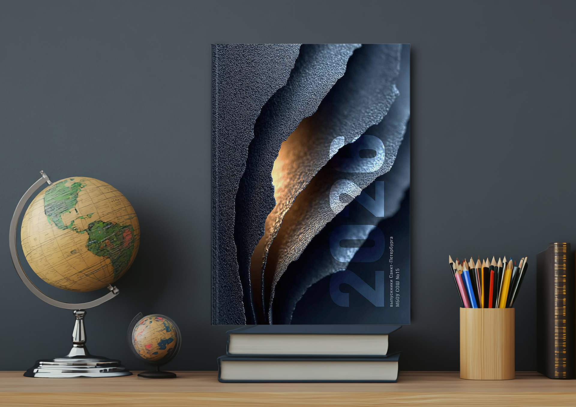 Черная графическая обложка «Витраж» с вертикальным расположением года выпуска. Великолепно смотрится в ламинации «Песок»!
